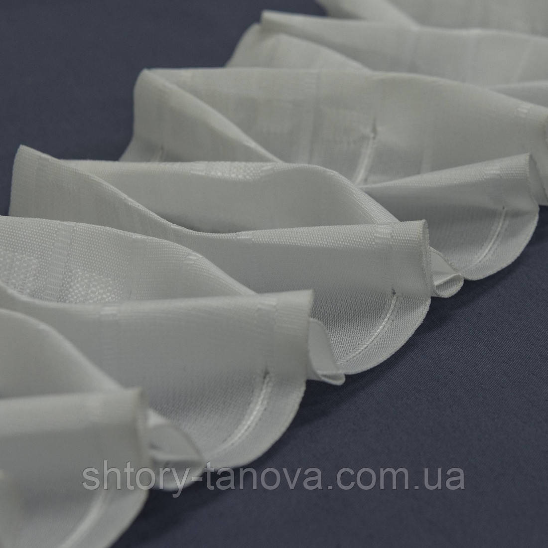 Матова шторна тасьма, тип складання – великі стільники, ширина - 13 см, коефіцієнт складання 1:2,5 означає, що тасьма стягне тканину у 2,5 рази, у бабині – 50 м. Тасьма є незамінним помічником у створенні художніх драпіровок обважнених портьєрних полетен. З її допомогою на полетне утворюються точні складки потрібної форми, відповідні типу складання, створюючи красивий малюнок у вигляді великих сот. Тасьма щільно прилягає до полетну і не дозволяє йому деформуватися.